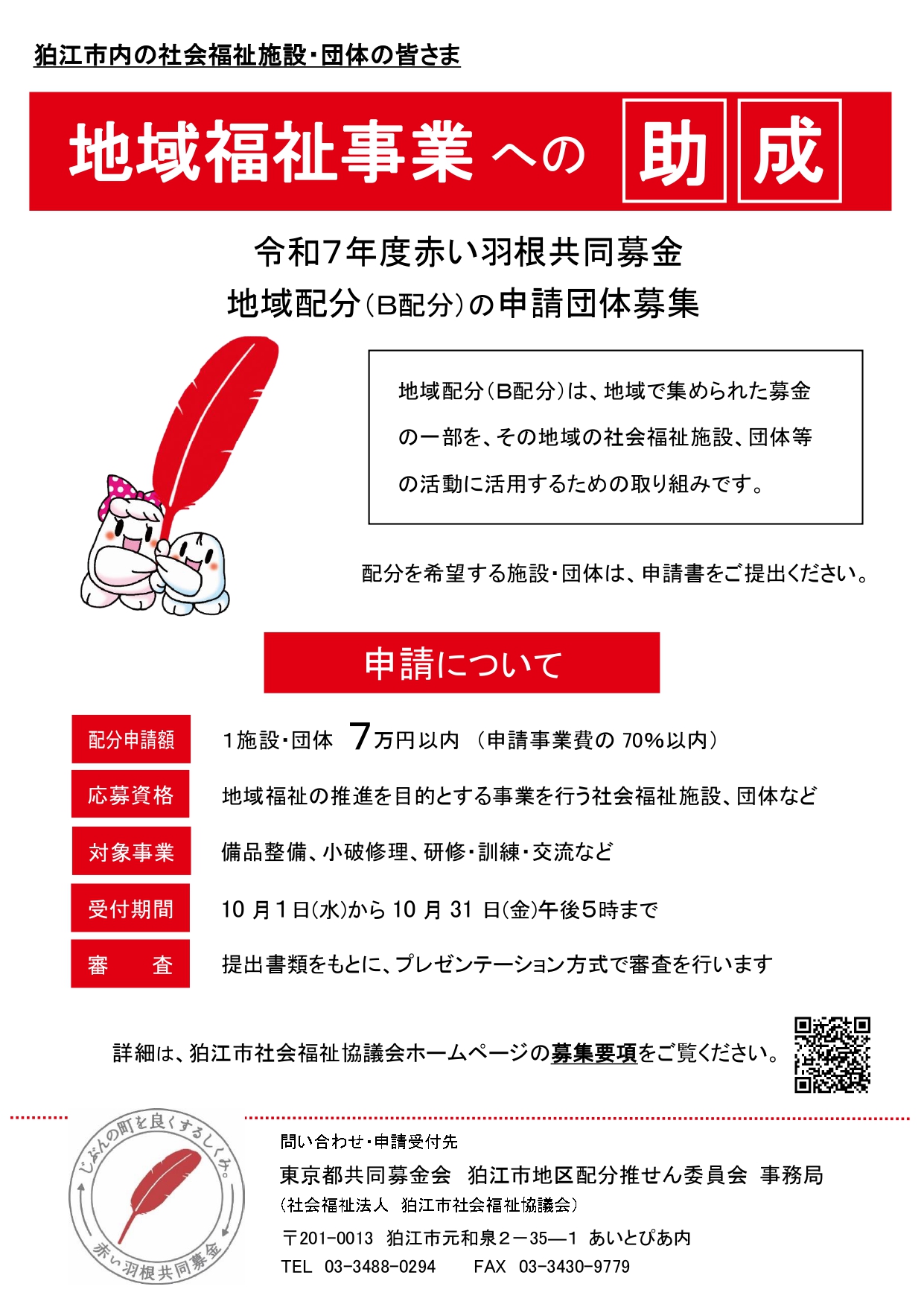 令和7年度の赤い羽根共同募金地域配分(B配分)申請団体の募集を行います。