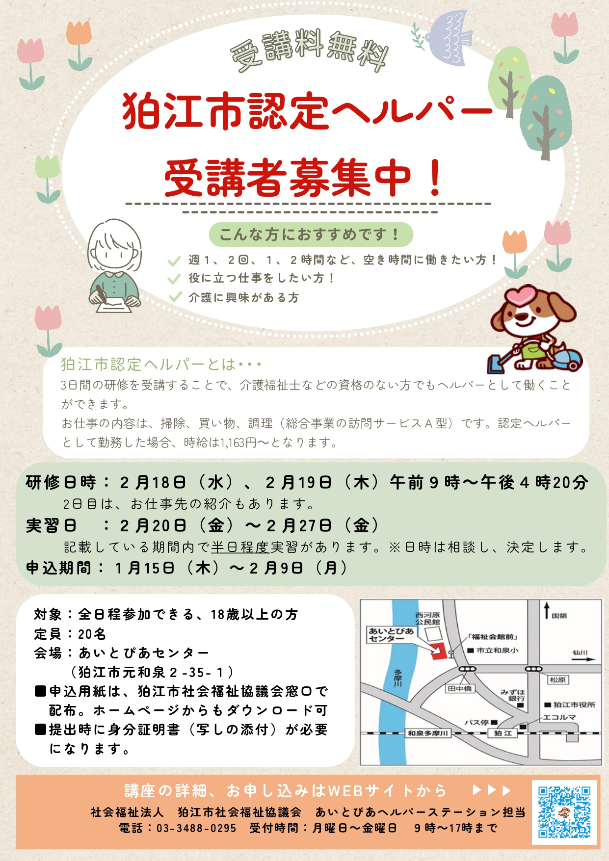 地域福祉課 相談支援係 ヘルパーステーション担当 03-3488-0295(直通)