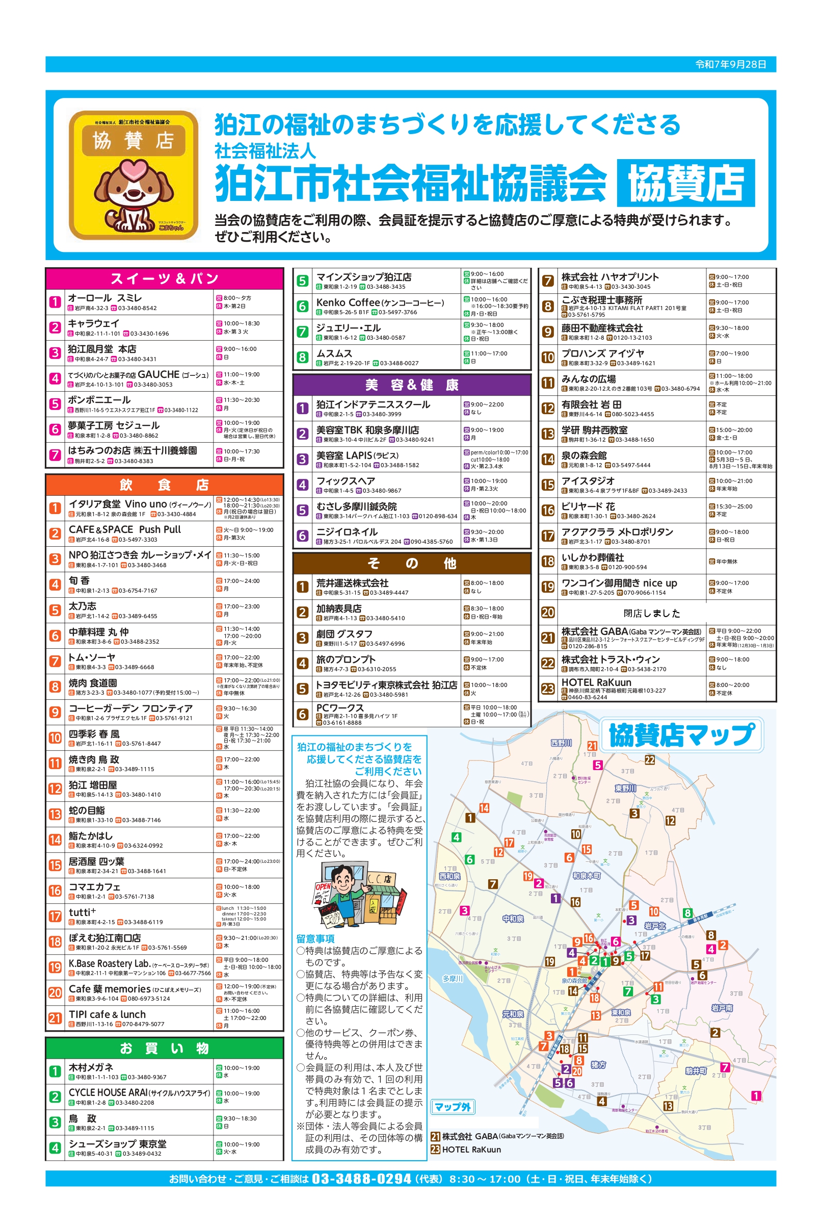 狛江市社会福祉協議会の活動及び会員事業の趣旨にご理解・賛同の上、本会の会員カードを提示した会員に対し、割引、特典等のサービスを提供することができる商店・企業様を協賛店舗として登録します。